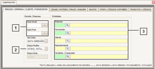 É possível, também, filtrar o relatório pela empresa, fornecedor e comprador do pedido (3).