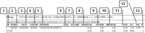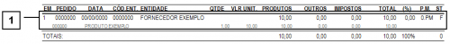 O Modelo Normal Sintético gera um relatório semelhante ao Modelo Normal Analítico, porém, exibindo para cada Compra, detalhes dos itens da mesma (1):