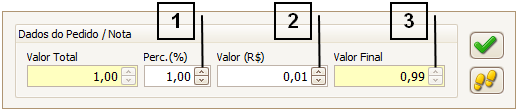 Informe a “Quantidade” (2), o “Valor Unitário” (3) ou o “Valor Total” (4), também é possível informar valores de “Descontos” (5).