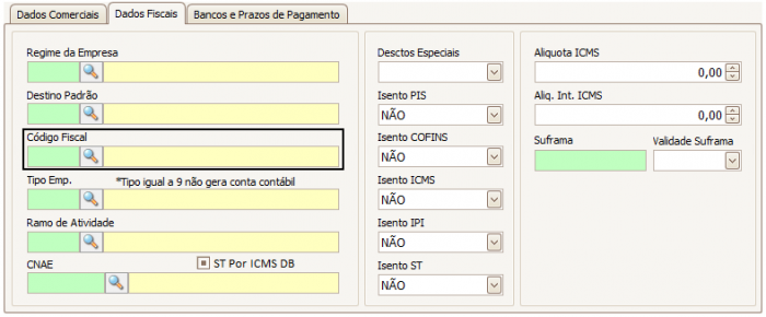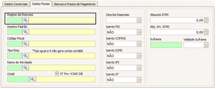 Além dos campos de isenção, há também os campos de Alíquota ICMS e Alíquota Interna ICMS que deverão ser preenchidos caso o cliente possua alguma alíquota diferenciada.