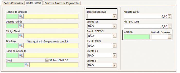 Suframa e Validade Suframa e Descontos Especiais: Clientes que possuem código SUFRAMA têm uma tratativa diferenciada de impostos. O sistema precisa que alguns campos sejam preenchidos corretamente: