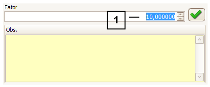 Ao clicar em “Alterar Fator de Produção”, uma tela se abrirá. Nesta tela, informe o “Fator” (1) e “Confirme”.