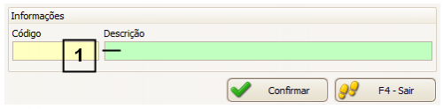 Para adicionar um Sub-Grupo informe o “Código” (1) do Sub-Grupo e a “Descrição” (2).
