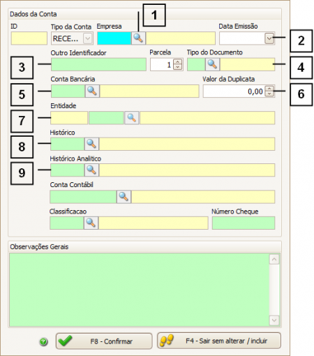 Para adicionar manualmente uma Conta a Receber existem alguns campos de preenchimento obrigatório aos quais devemos nos atentar, são eles: