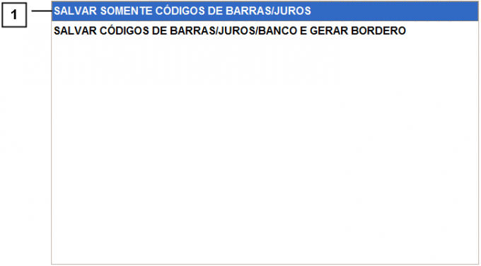 Na tela que se abrir, selecione a opção “Salvar Somente Códigos de Barra / Juros”.