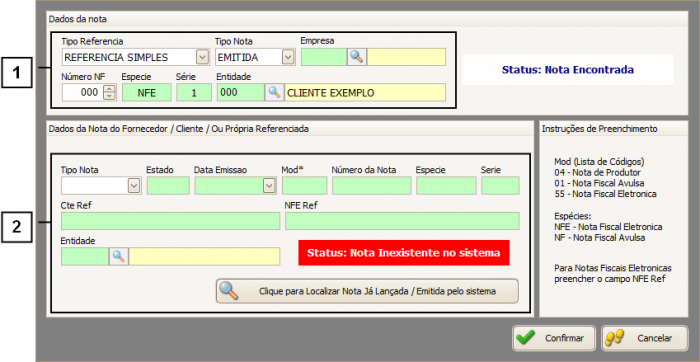2.Refere-se à Nota cuja devolução está sendo realizada, ou seja, a Nota que deve ser referenciada.