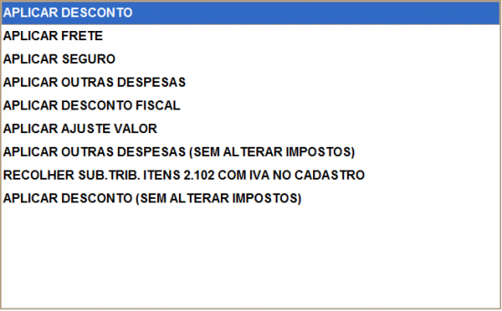 Para aplicar um desconto deve-se selecionar o tipo do desconto que deseja aplicar, de acordo com as seguintes opções: