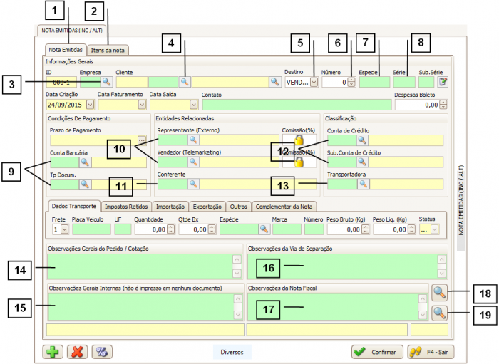 15. Observações gerais internas (não é impresso em nenhum documento) – As informações descritas neste campo não serão exibidas em nenhum documento, apenas ao acessar no sistema.