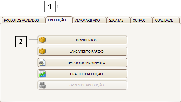 Na aba “Produção” (1), clique em “Movimentos” (2).