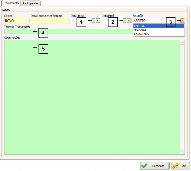 3. Situação - Status do treinamento.