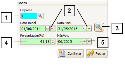 Após inserir a data inicial e a data final, utilize a “Lupa” (3) para gerar automaticamente esta porcentagem.