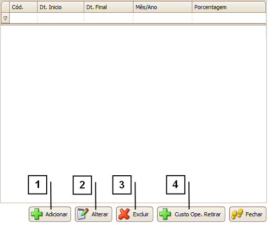Antes de adicionar um novo custo operacional é necessário inserir o que não fará parte deste do custo operacional, para isto utilize o botão “Custo Ope. Retirar” (4).