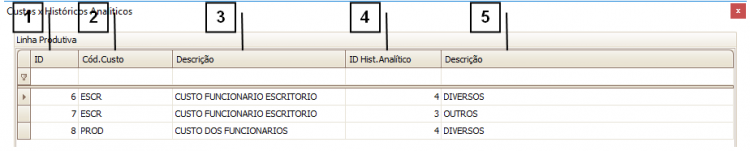 1. ID: ID da referência - criado automaticamente pelo sistema ao criar um custo.