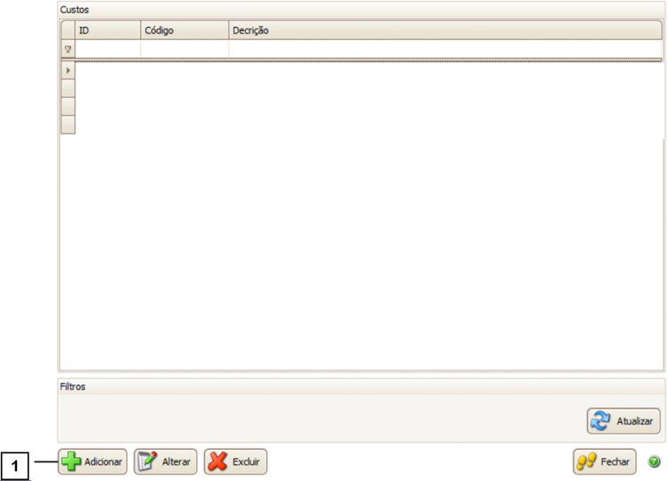 Para acrescentar um custo selecione a aba (1) e clique em adicionar (2).