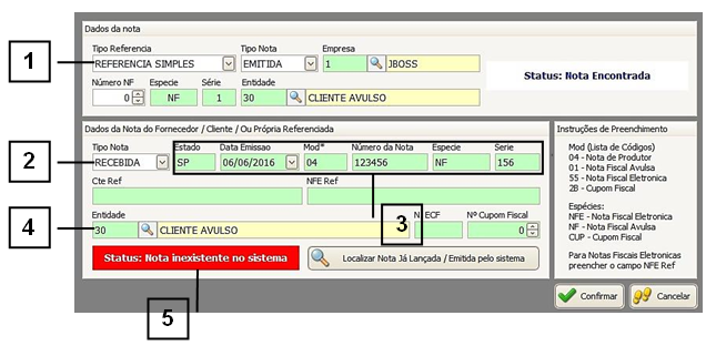 4. Entidade: Preencher com Entidade da nota que foi recebida (a mesma da nota que está sendo referenciada).