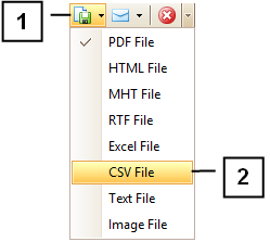 Após gerado o relatório, no menu superior, clique em “Export Document...” (1) > “Excel File” (2).