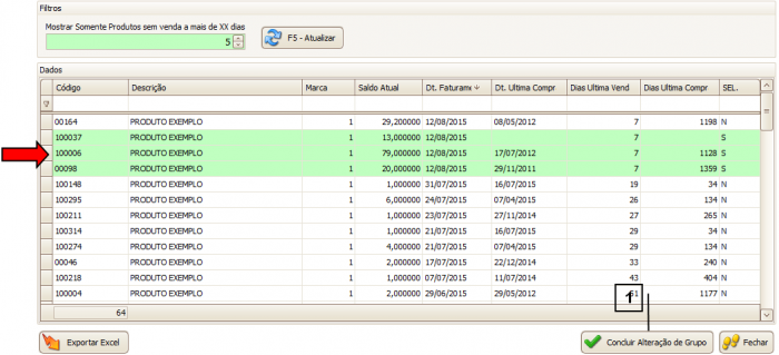Como utilizar a tela de alterar grupo de produtos sem venda