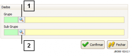 Ao clicar em confirmar uma tela de abrirá para informar o novo “Grupo” (1) e “Subgrupo” (2), para confirmar clique em “Confirmar”.