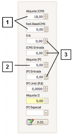 IVA / ICMS Entrada / IPI de entrada (3): Estes impostos serão utilizados somente nas notas de entrada.