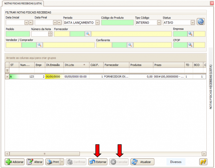 Localize o vale que não possui mais nenhum item (na tela de Notas Recebidas) e cancele-o.