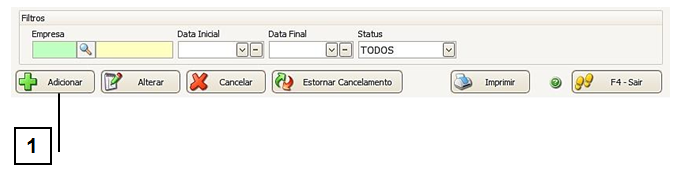 Nessa tela, preencha o campo “Data de Emissão(1) com a mesma data em que a conta foi baixada anteriormente. Os demais campos devem ser preenchidos da seguinte forma: