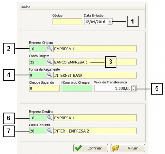 2. Empresa Origem: Informar a Empresa de onde o valor saiu. No caso, a “Empresa 1”.