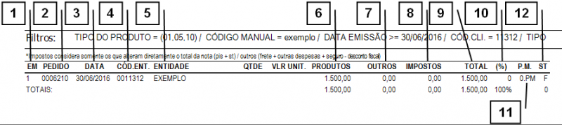 9. TOTAL: A coluna "total" do relatório é o campo "Total Geral" do pedido devendas.