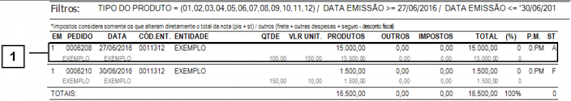 O Modelo Normal Analítico gera um relatório semelhante ao Modelo Normal Sintético, porém, exibindo para cada venda, detalhes dos itens da mesma (1):